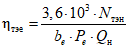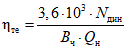 Qн - низшая теплотворная способность топлива, кДж/кг.