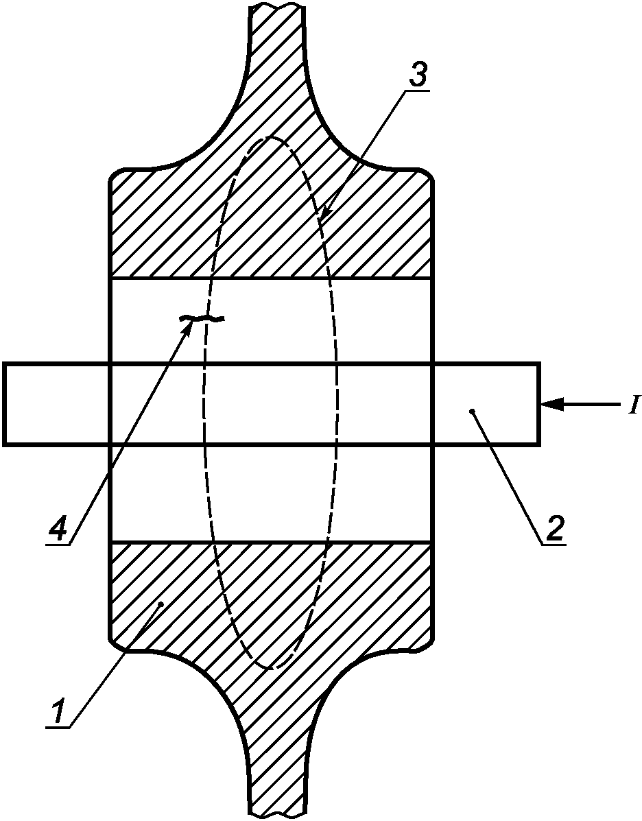1 - бандаж; 2 - седлообразное намагничивающее устройство
