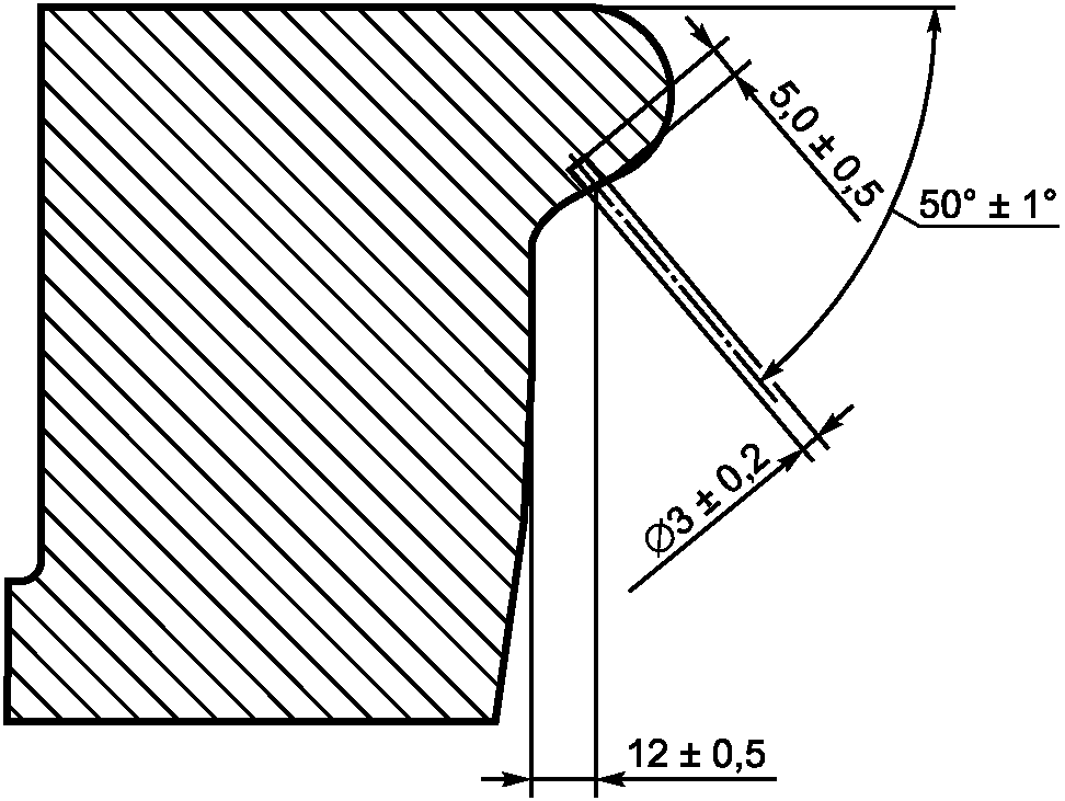 Б.3 Допускается плоскодонные эталонные отражатели глубиной более 60 мм в мерах НК выполнять с использованием засверловки большего диаметра. Глубина плоскодонного эталонного отражателя относительно засверловки должна быть не менее 25 мм.