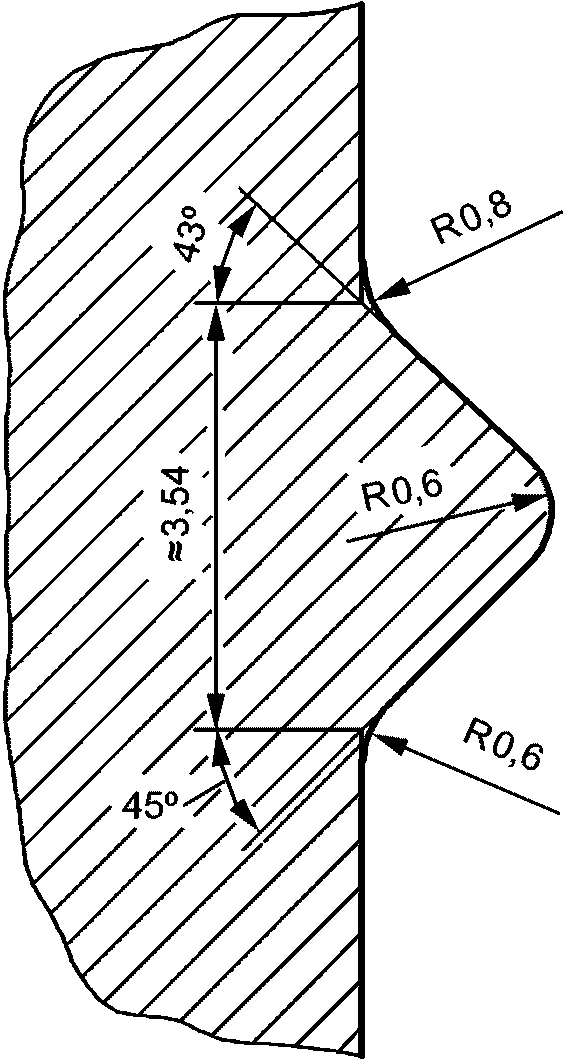 <a> Угол выступа  должен сохраняться для всех нитей резьбы. Профиль резьбы должен на всем протяжении соответствовать профилю фрезы. |