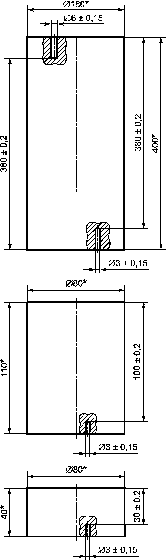 Меры НК для настройки предельной чувствительности УЗК осей должны быть изготовлены из чистовой оси, соответствующей требованиям