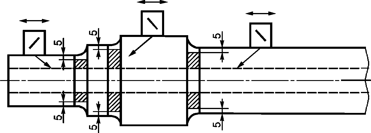 7.2.2 УЗК чистовых полых осей эхо-методом проводят по следующим схемам контроля: