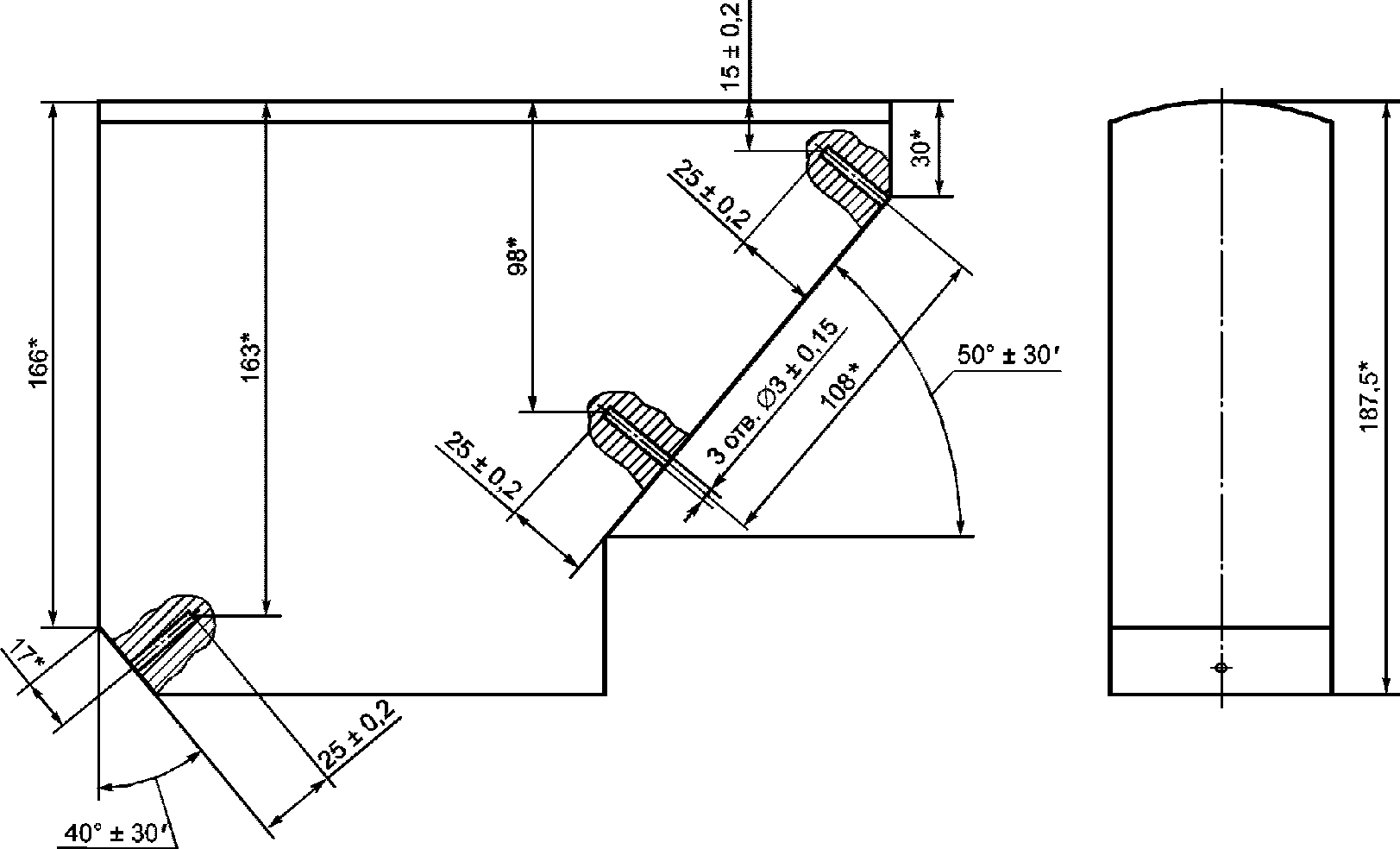 А.4. Месторасположение, ориентация и размеры отражателей в мерах должны соответствовать приведенным на указанных рисунках.