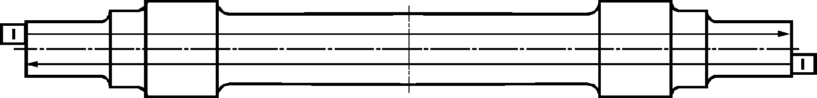 черновая ось: Ось, полученная методом горячего деформирования из осевой заготовки, подвергнутая термической обработке, имеющая припуски для окончательной механической обработки и прошедшая неразрушающий контроль. |