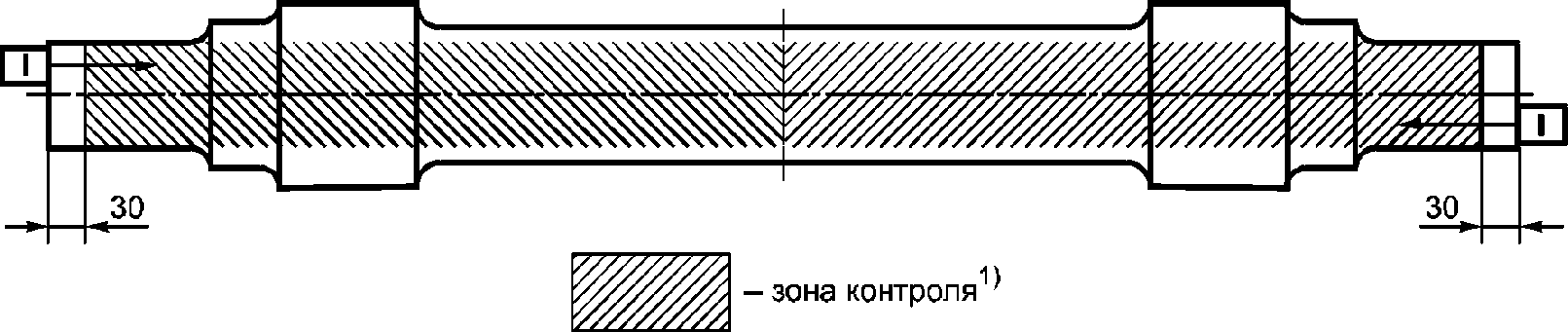 7.2.1 При УЗК чистовых полых осей эхо-методом выявлению подлежат внутренние дефекты, расположенные в зонах контроля и имеющие характеристики, соответствующие