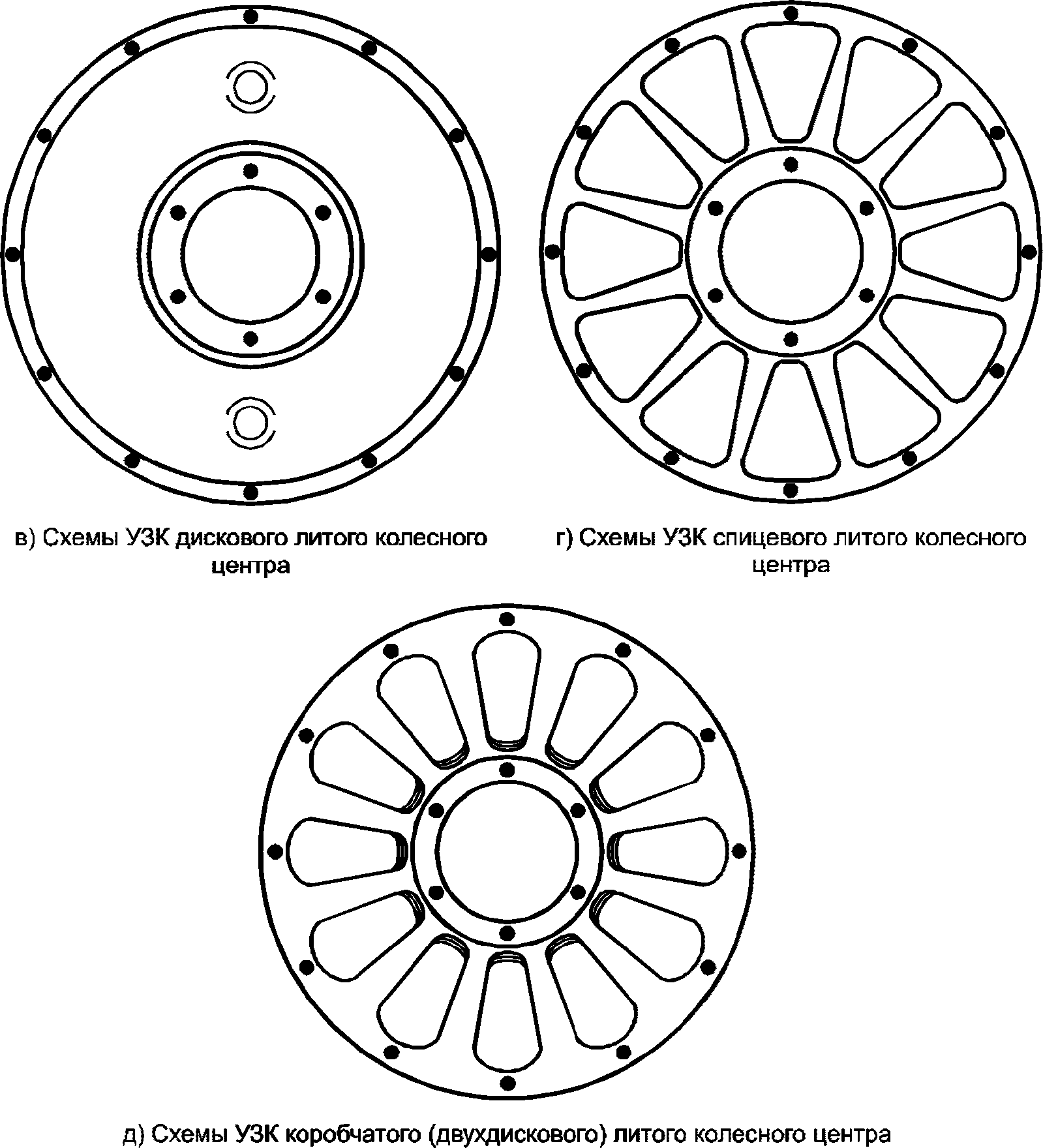 Рисунок А.2 - Схемы УЗК обода и ступицы колесного центра ЗТМ