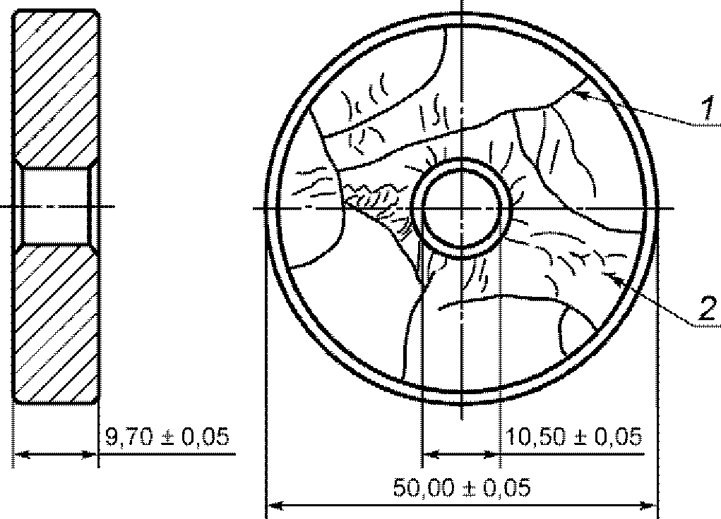 Б.2 Характеристики образца типа 1 для проверки качества магнитных индикаторов приведены на рисунке Б.2.