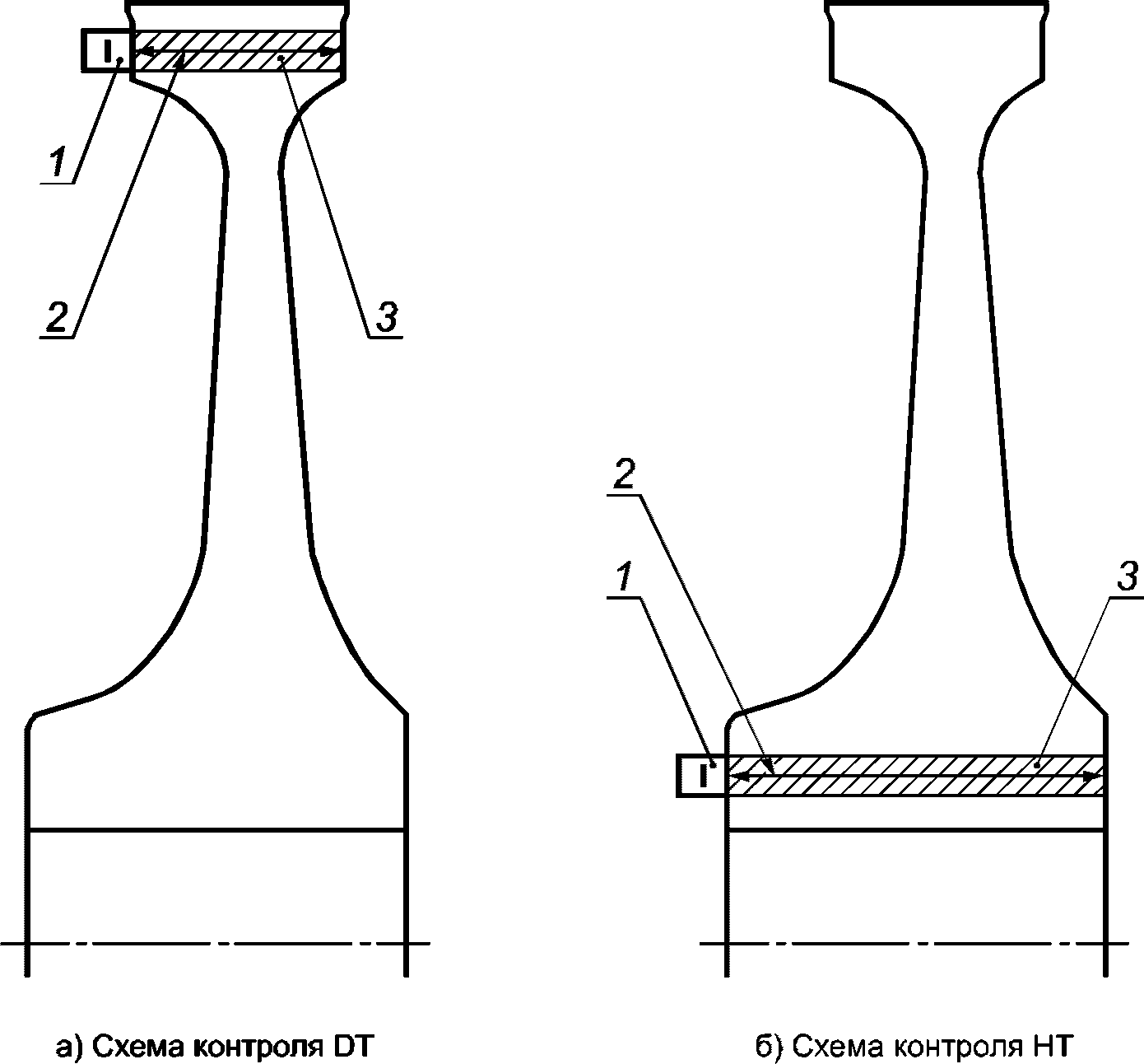 6.3.4 МПК катаного колесного центра с предварительной механической обработкой проводят в зоне диска, включая переходы диска в обод и ступицу, в соответствии с