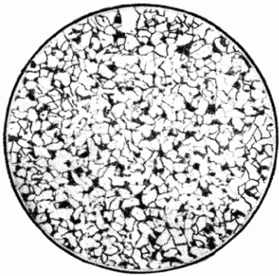 Ряд А построен по принципу образования цементитной сетки по границам зерен. Для количественной характеристики используется доля периметра отдельных зерен феррита, охваченная сеткой цементита.
