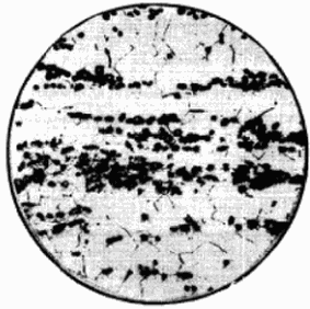 Далее снова устанавливают объектив 10x, предметный столик микроскопа переводят на следующий участок шлифа с наибольшим баллом структурной полосчатости, и вышеназванный цикл измерений повторяют. Таким образом накапливается информация по панорамам с наибольшей полосчатостью. Как только на трех участках шлифа будет найдено одинаковое значение наибольшей полосчатости, измерения прекращают. Для исследуемого образца назначают балл полосчатости, установленный на этих трех участках.