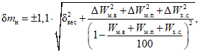 - допускаемая относительная погрешность измерений массы брутто нефти/нефтепродуктов (мазутов) или массы нефтепродуктов, %, вычисляемая по