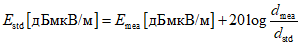 При использовании измерительных расстояний, не совпадающих с опорными, измеренные значения напряженности поля помех следует пересчитать к опорным расстояниям. Эту процедуру проводят в соответствии с методами пересчета полученных результатов измерений помех, приведенными в