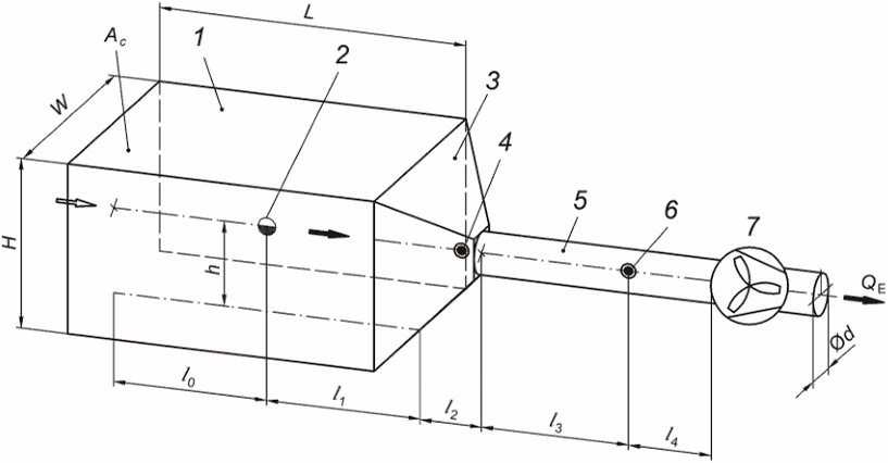 Испытательный стенд состоит из камеры с соответствующим раструбом и дополнительным вентилятором (см.