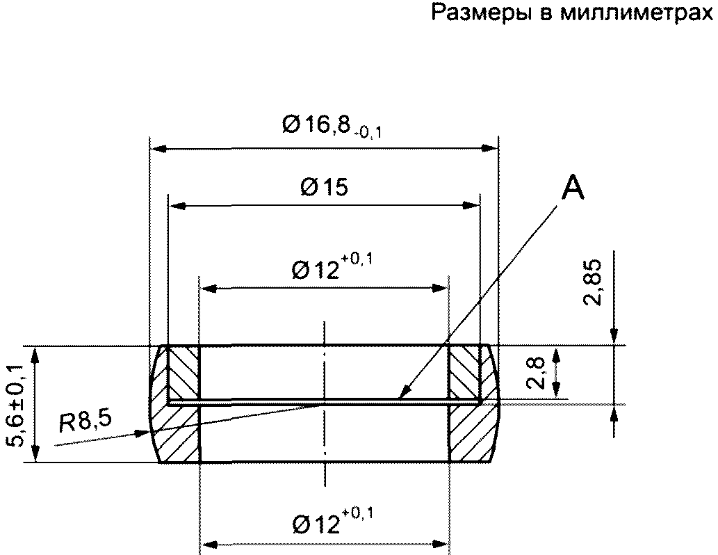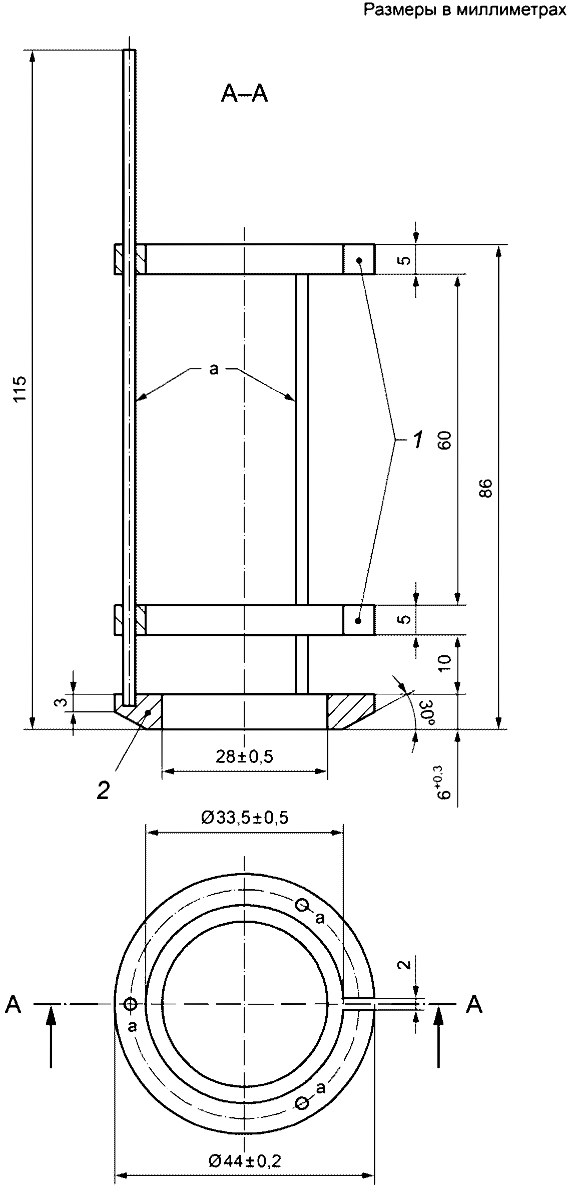 6.2 Водонепроницаемый плоскодонный цилиндрический кожух, используемый в качестве воздушной бани, с внутренним диаметром (45 +/- 0,25) мм, наружным диаметром (48 +/- 0,25) мм и высотой (115 +/-3) мм.