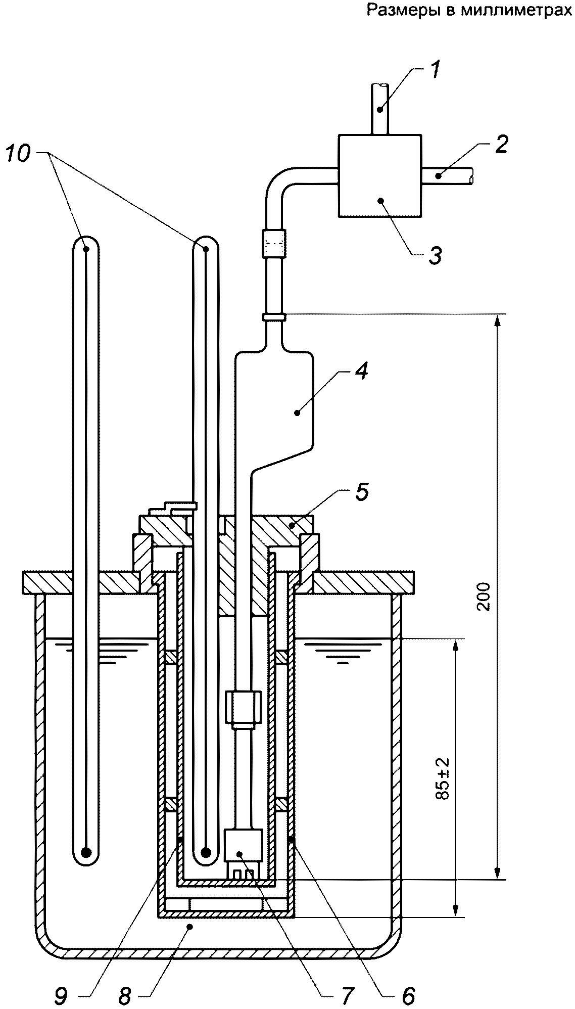 10.6 Сразу же начинают испытание, следуя инструкциям изготовителя. Охлаждающую баню доводят до соответствующей температуры, указанной в