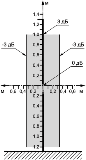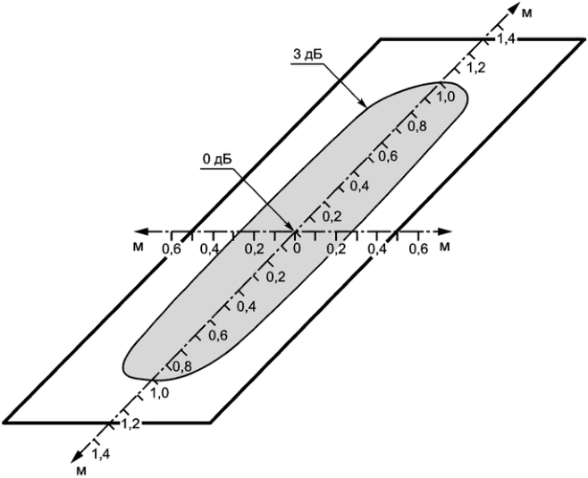 Рисунок B.3 - Зона +/- 3 дБ магнитного поля, создаваемого