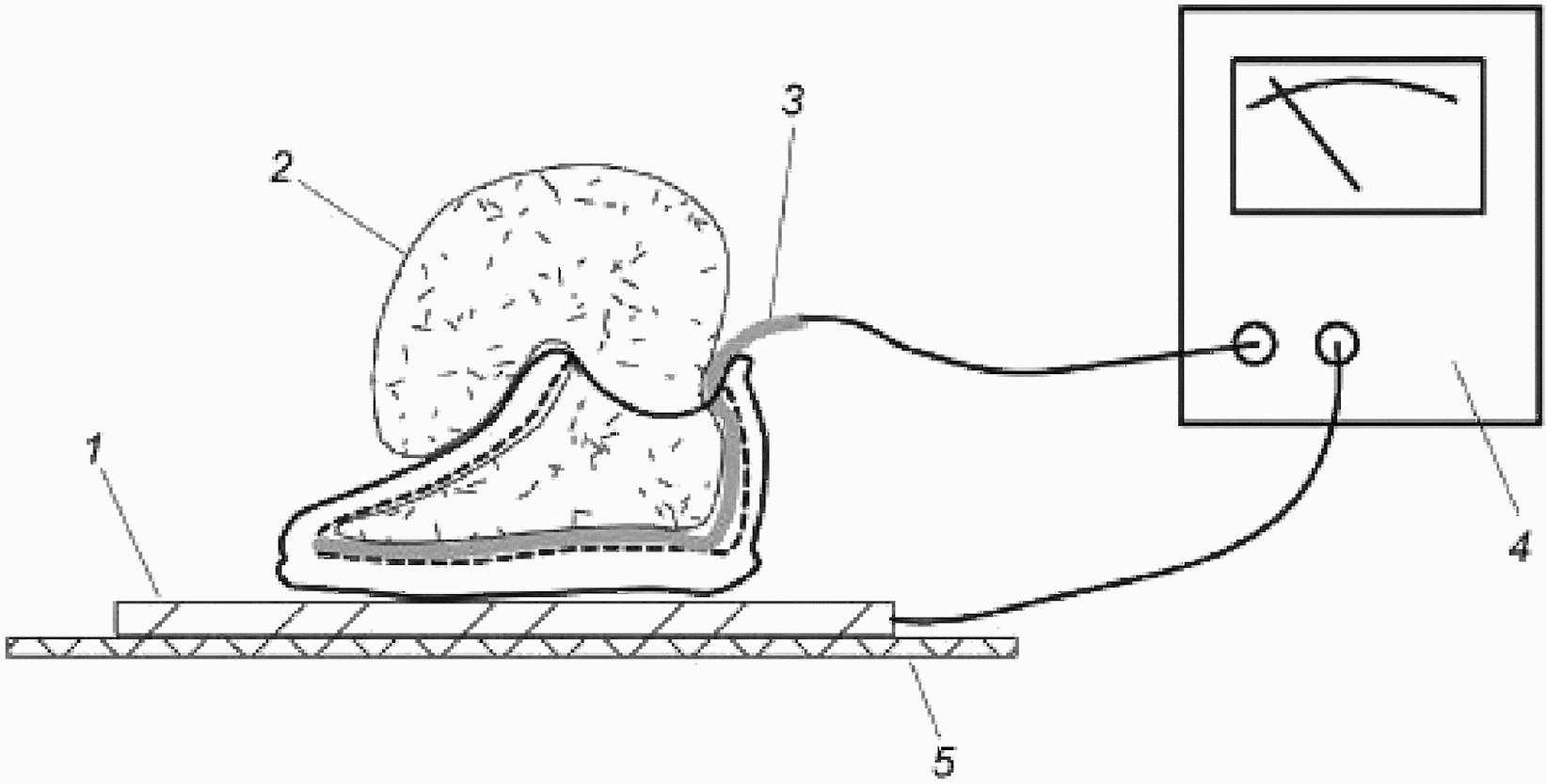 обуви; 3 - проводящий электрод; 4 - устройство измерения