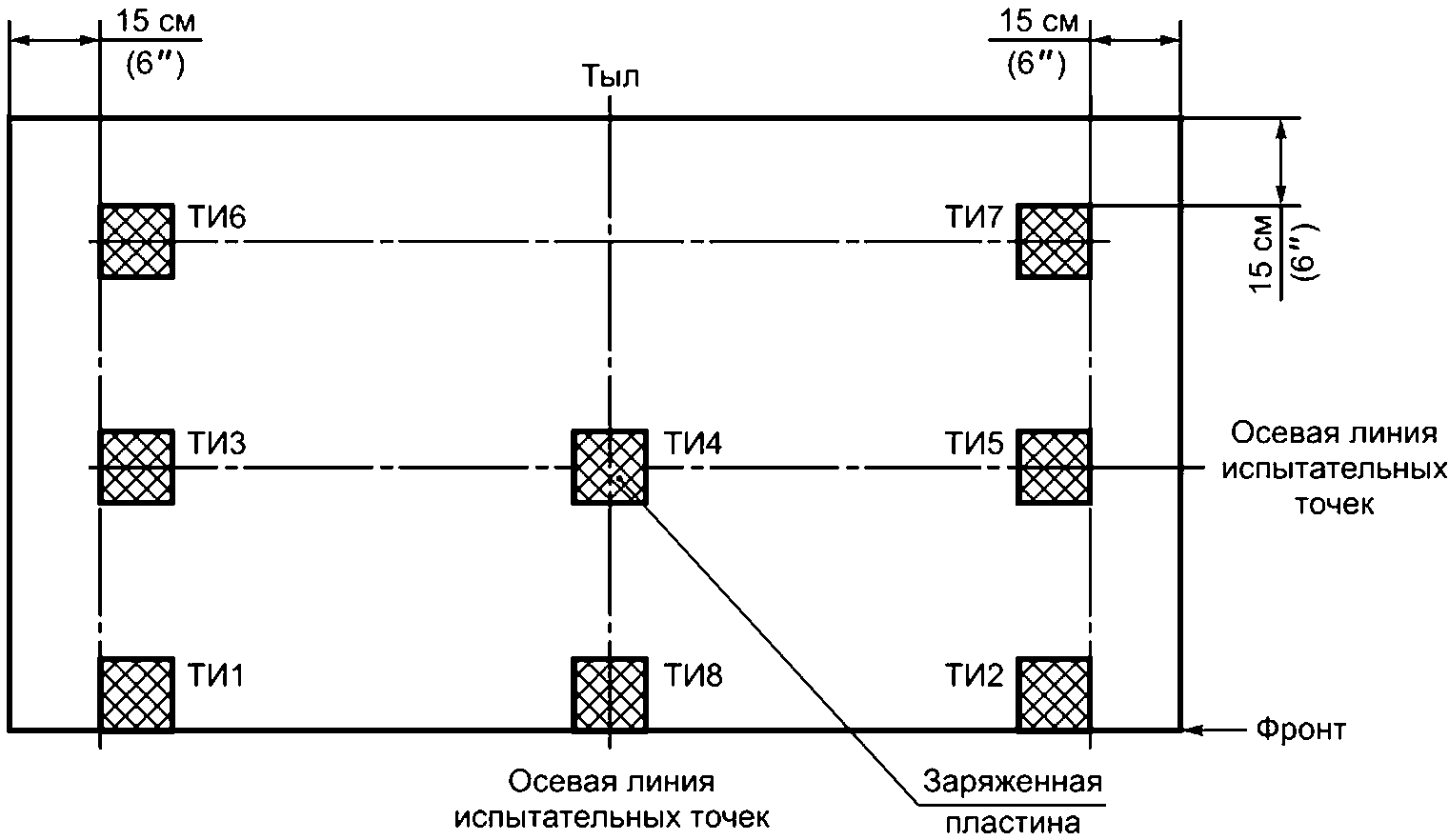 рисунке 2 расстояния A от пластины не должно быть никаких заземленных или незаземленных предметов, за исключением изоляторов крепления и электрических контактов измерительной пластины.