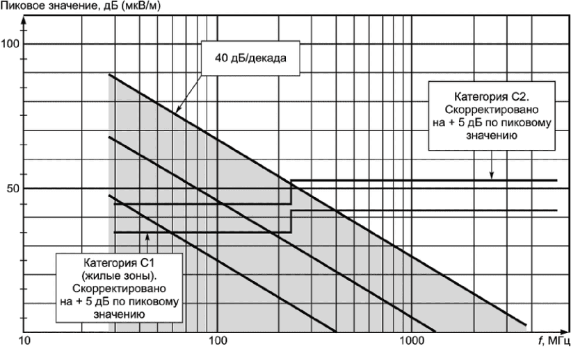 Настоящий стандарт распространяется на конкретную продукцию, содержит полный комплект требований ЭМС и предназначен для применения при оценке соответствия требованиям ЭМС продукции категорий C1, C2 и C3 при размещении их на рынке (см.