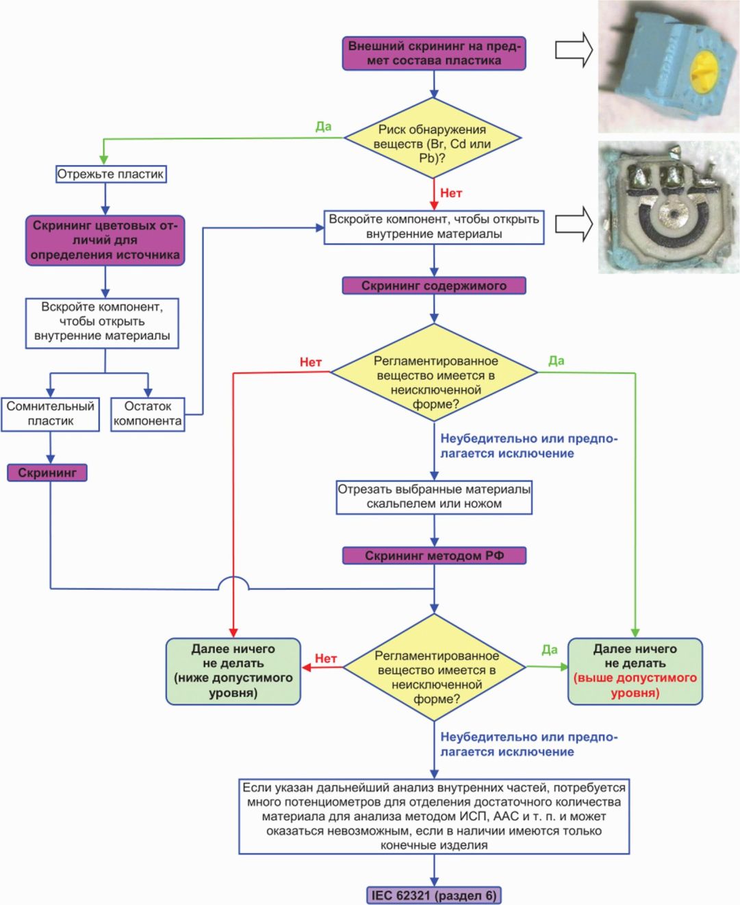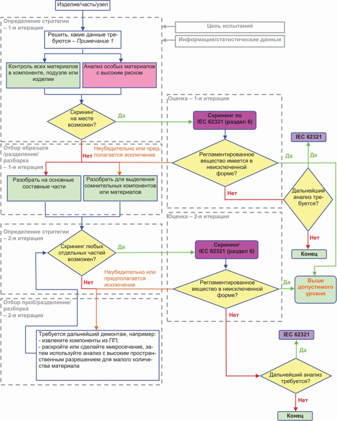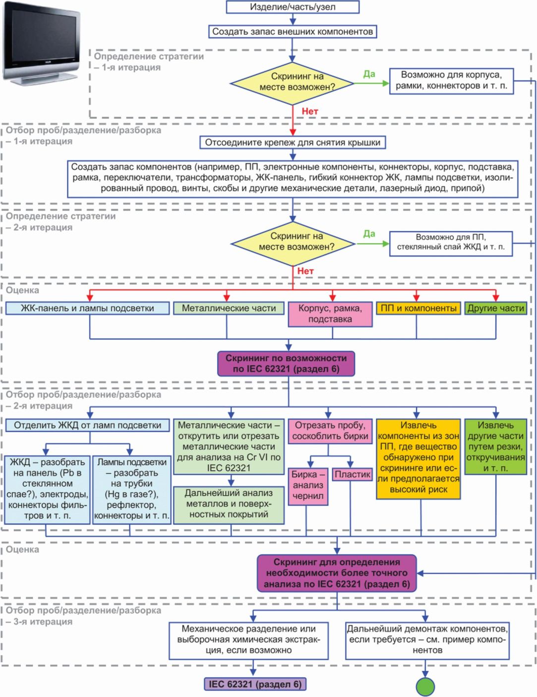 - аналитические методы контроля для измерения уровней содержания регламентированных веществ. Данные методы установлены в других стандартах (например, в других частях серии IEC 62321), на которые в настоящем стандарте приведены ссылки как на "стандарты на методы контроля";
