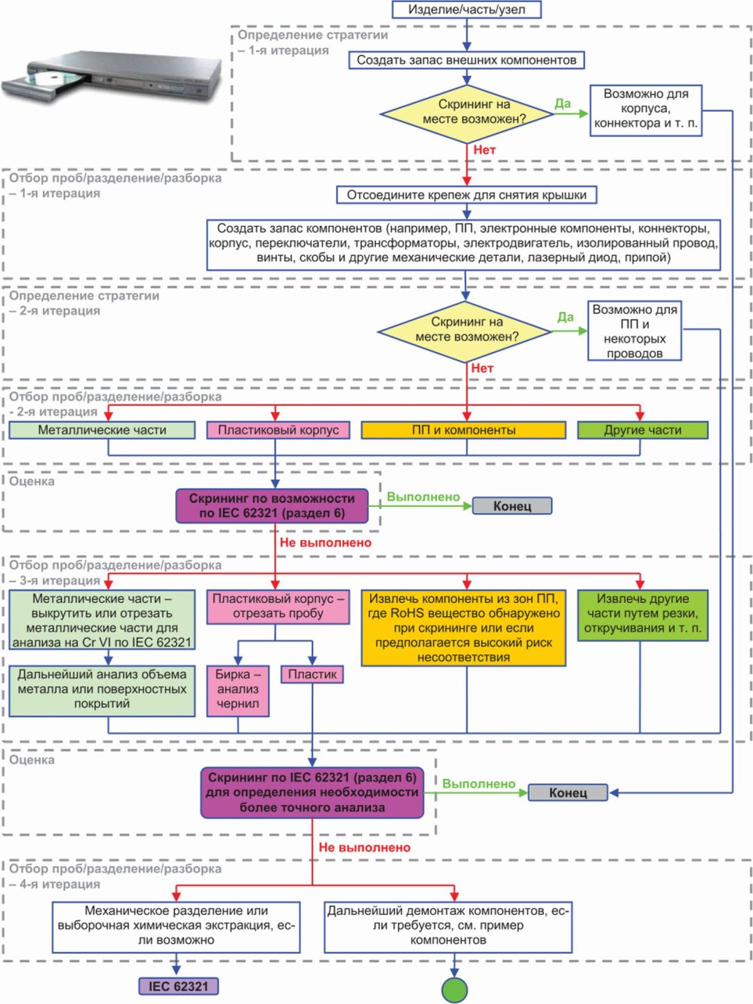 Целью стандартов серии IEC 62321 является установление методов контроля, которые позволят определить уровень регламентированных веществ в электротехнических изделиях.