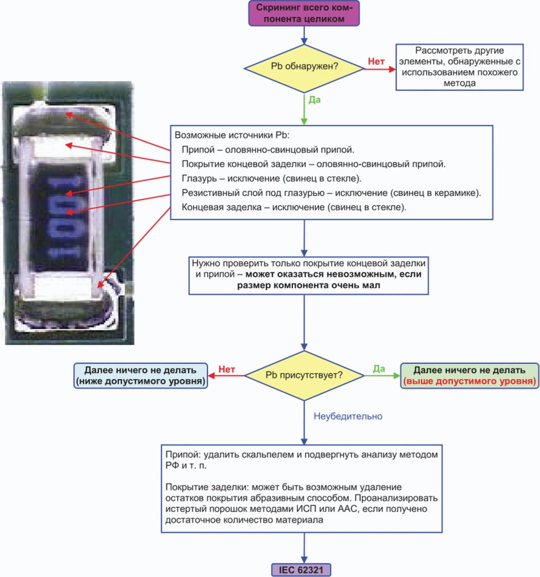Резистор | Pb | Резистор: Pb (стекло) | Практический метод механического разделения отсутствует | Перекрестное загрязнение. Число проб для получения достаточной массы пробы; время приготовления проб |