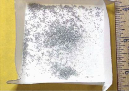 рисунке E.12 показан собранный материал шариков припоя. Однако образец, собранный с использованием такой процедуры удаления вручную, не мог рассматриваться как "гомогенный" материал шариков припоя, поскольку он содержал другие материалы (такие как флюс, фрагменты основы), полученные в ходе процедуры разделения.