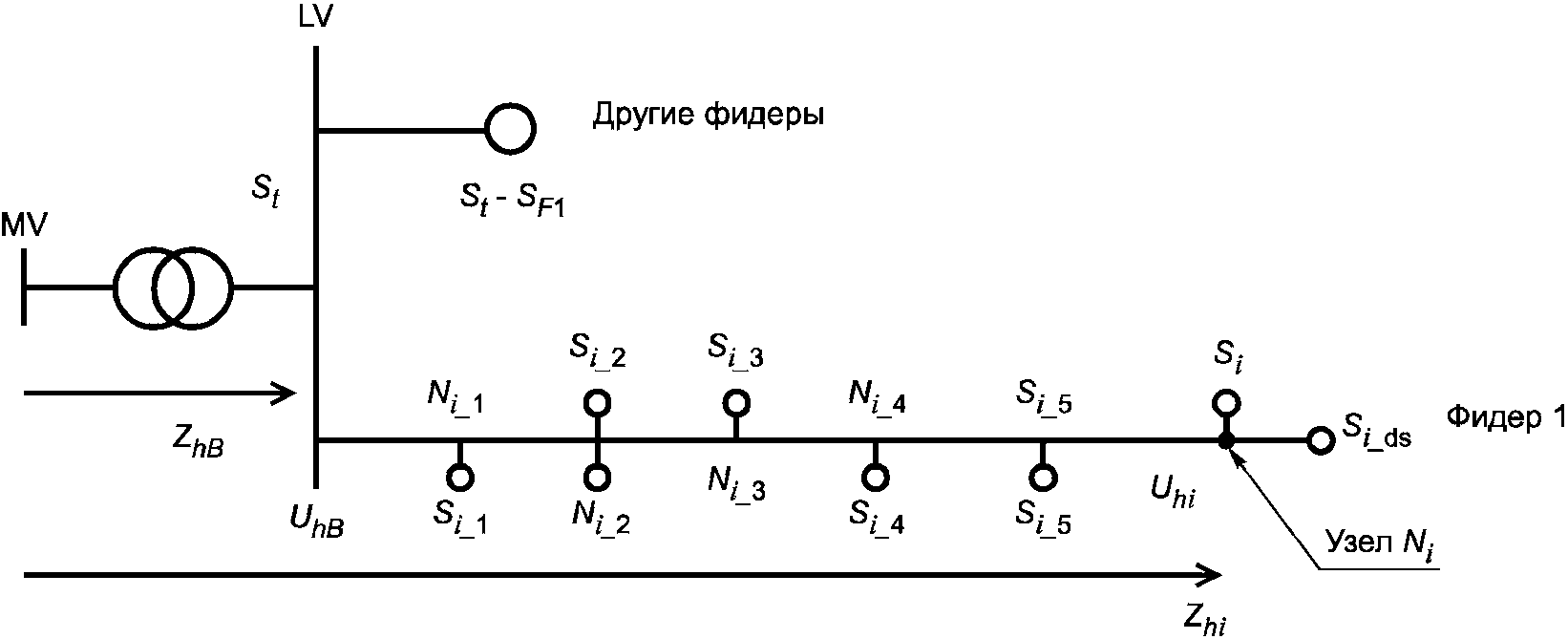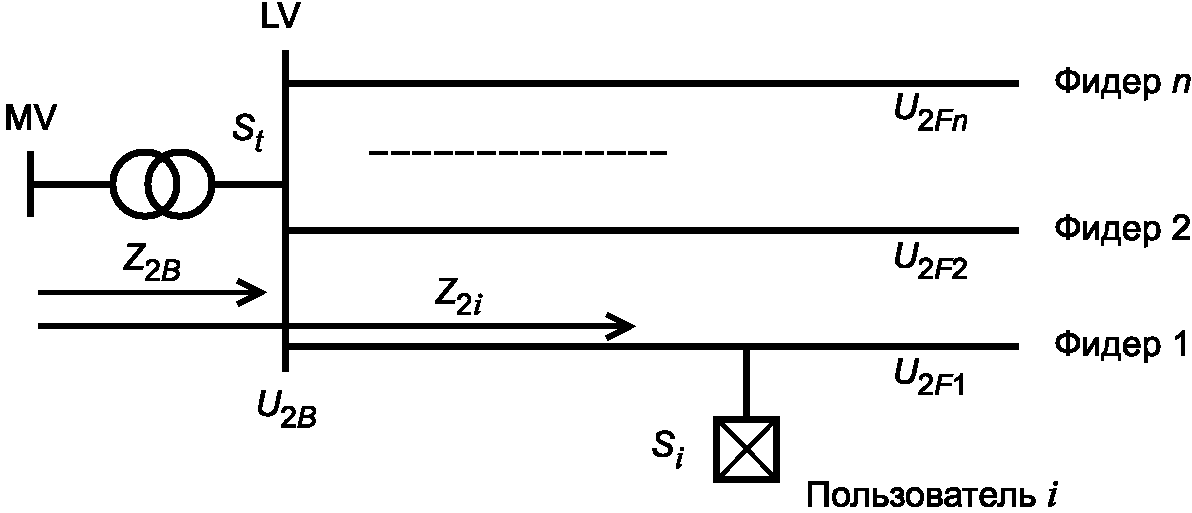 - комплексное сопротивление низковольтного фидера на единицу длины линейного проводника на основной частоте.