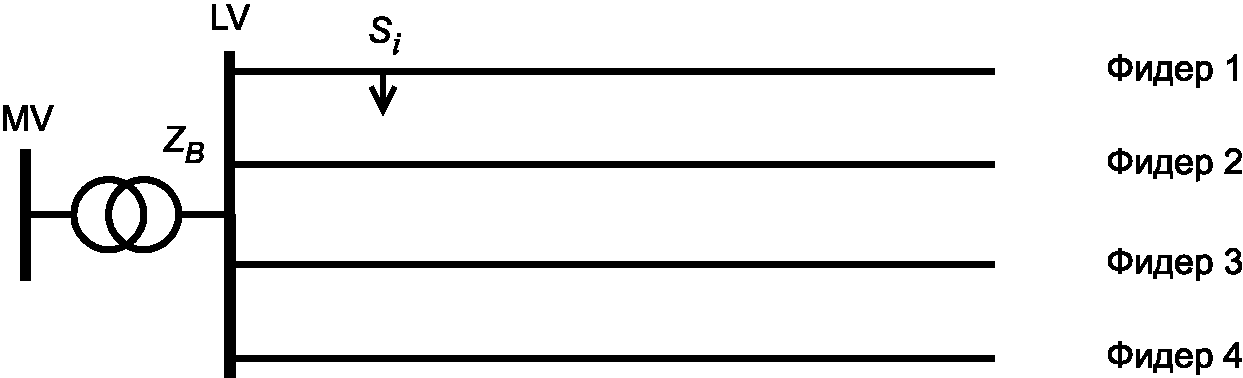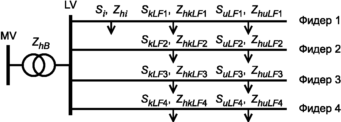 - комплексное сопротивление низковольтного фидера на единицу длины на основной частоте.