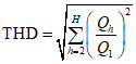 THD - суммарный коэффициент гармоник - отношение среднеквадратичного значения суммы всех гармонических компонентов до указанного порядка H к среднеквадратичному значению основной составляющей.