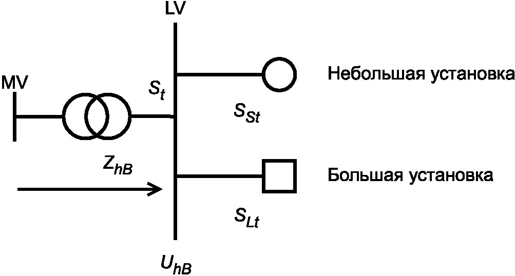 SSt - полная мощность всех небольших установок, подключенных к рассматриваемой низковольтной системе.