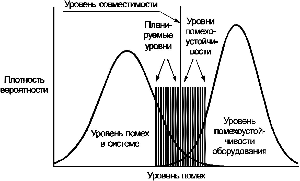 Примечание - По соглашению уровень совместимости устанавливается таким образом, что существует лишь малая вероятность (например, 5%) того, что он будет превышен фактическим уровнем помех.