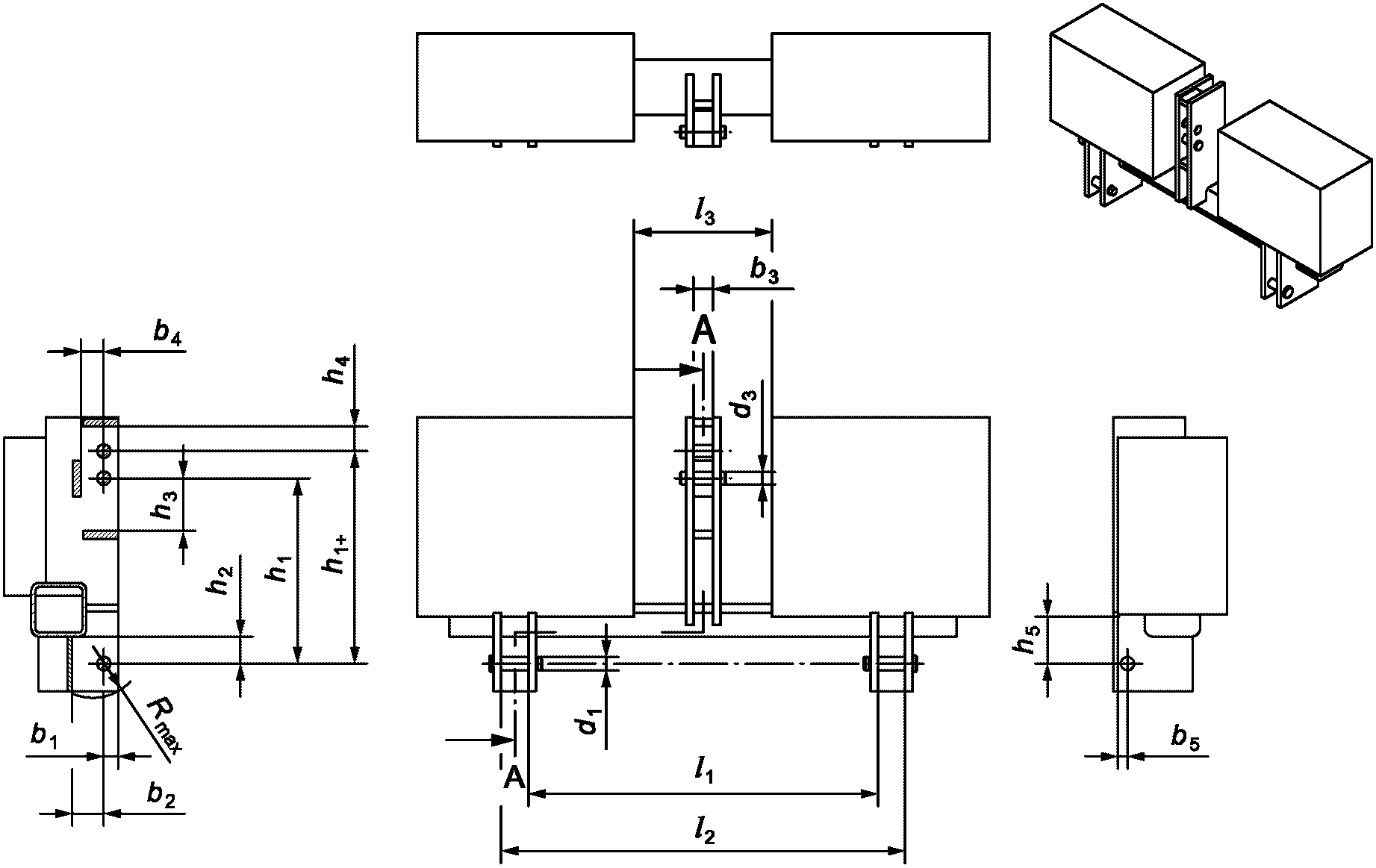 h3 | Проем для опускания верхнего крюка | См. ISO 2332:2009, таблица 1, размер A |