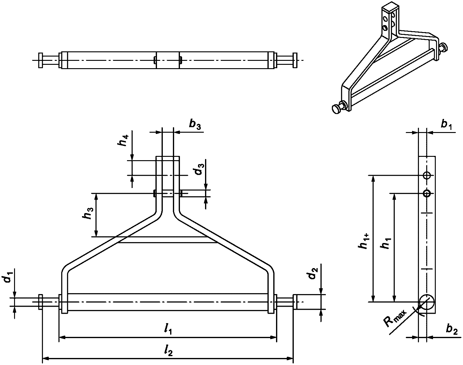 Для навесных машин с нижними сцепными устройствами типа "скоба" не требуется дополнительных опорных поверхностей при условии соответствия диаметра пальца и размеров скобы размерам d1, l1, l2 305 и b1.