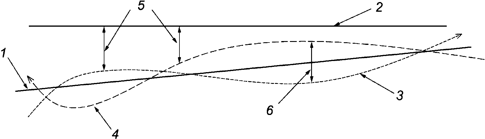 1 - линия A - B; 2 - постоянная линия на поверхности земли;