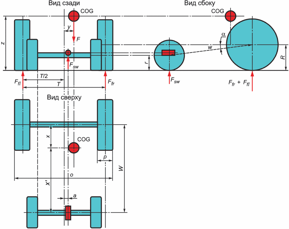 Боковое смещение COG (относительно центра фиксированной оси) (положительные значения вправо от центра фиксированной оси по рисунку 1) | y | мм | [(FfrT) + (0,5T + a)Fsw]/Ft - 0,5T |