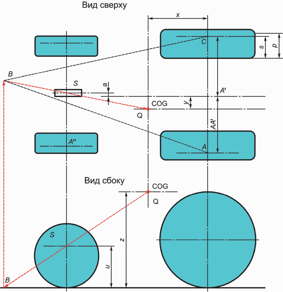 Центр тяжести COG ненагруженной машины определяют посредством весов и поддерживающих опор (см.
