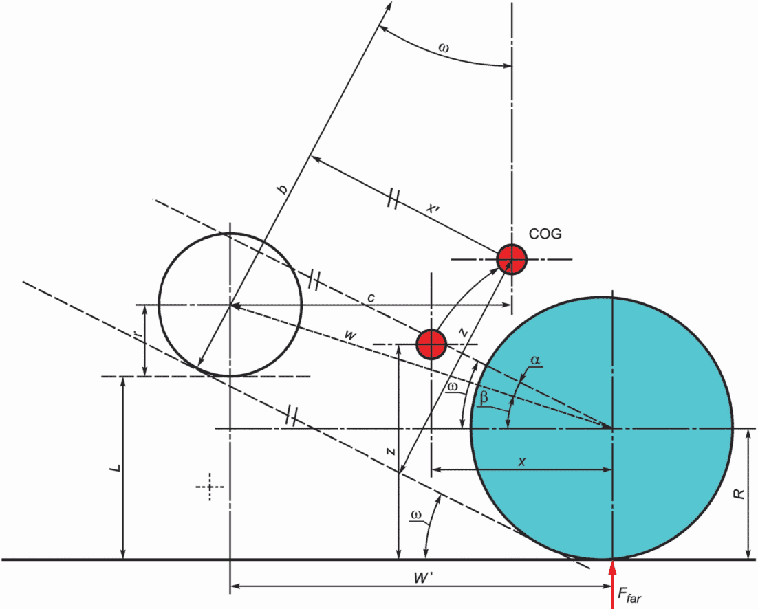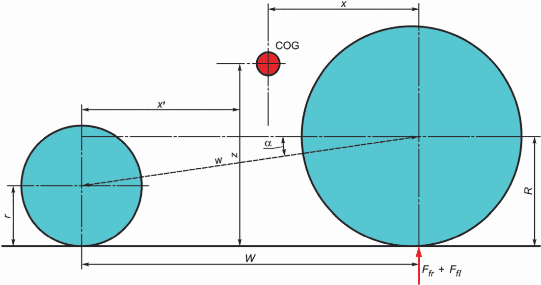 Продольное положение COG (относительно оси вращения качающейся оси) | x' | мм | W(Ffr + Ffl)/Ft |