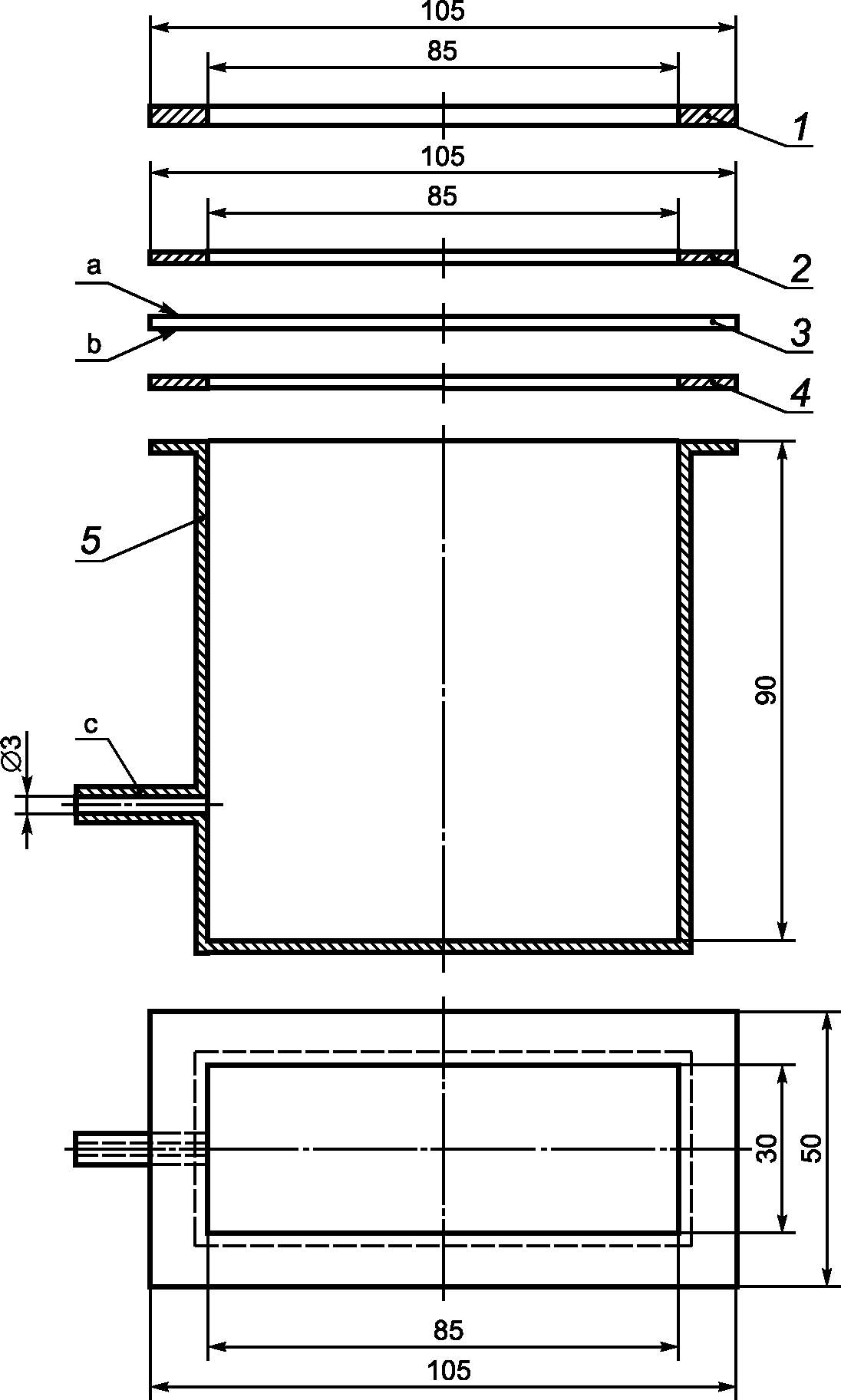 Рисунок G.1 - Пример устройства для проверки повреждения образца после испытаний материалов (прямоугольный испытательный стакан) (Amd. 1:2012) | |