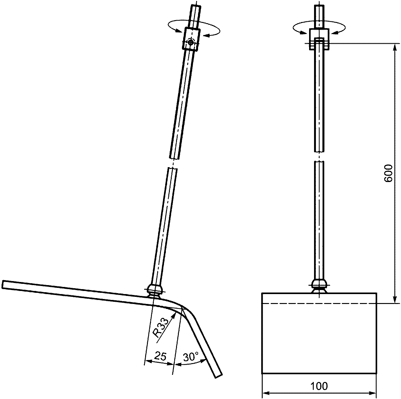 1 - стержень с шаровым наконечником; 2 - серединная линия