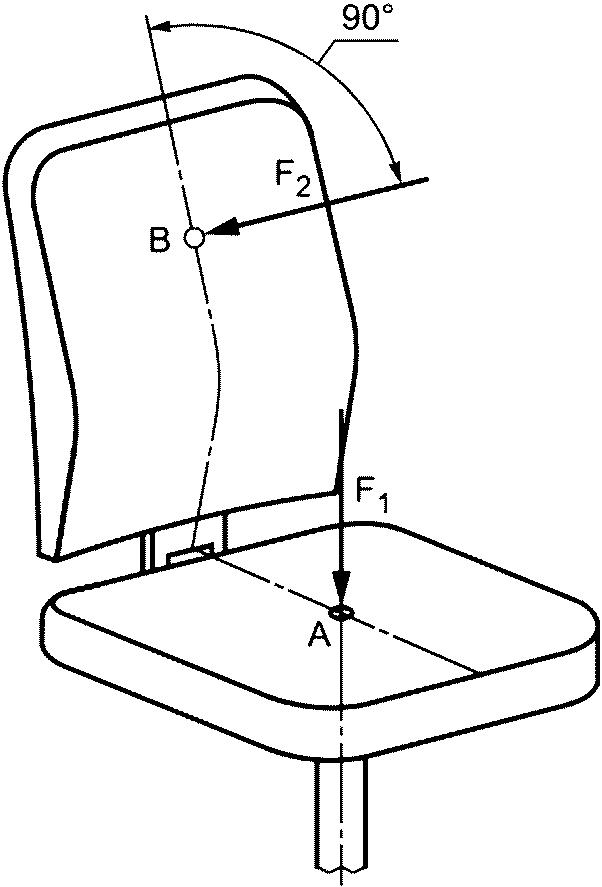 | Испытание спинки на опрокидывание на наклон назад для стульев без регулировки наклона спинки | Нагрузка, направленная вниз | F1 | 600 | - | 1 |