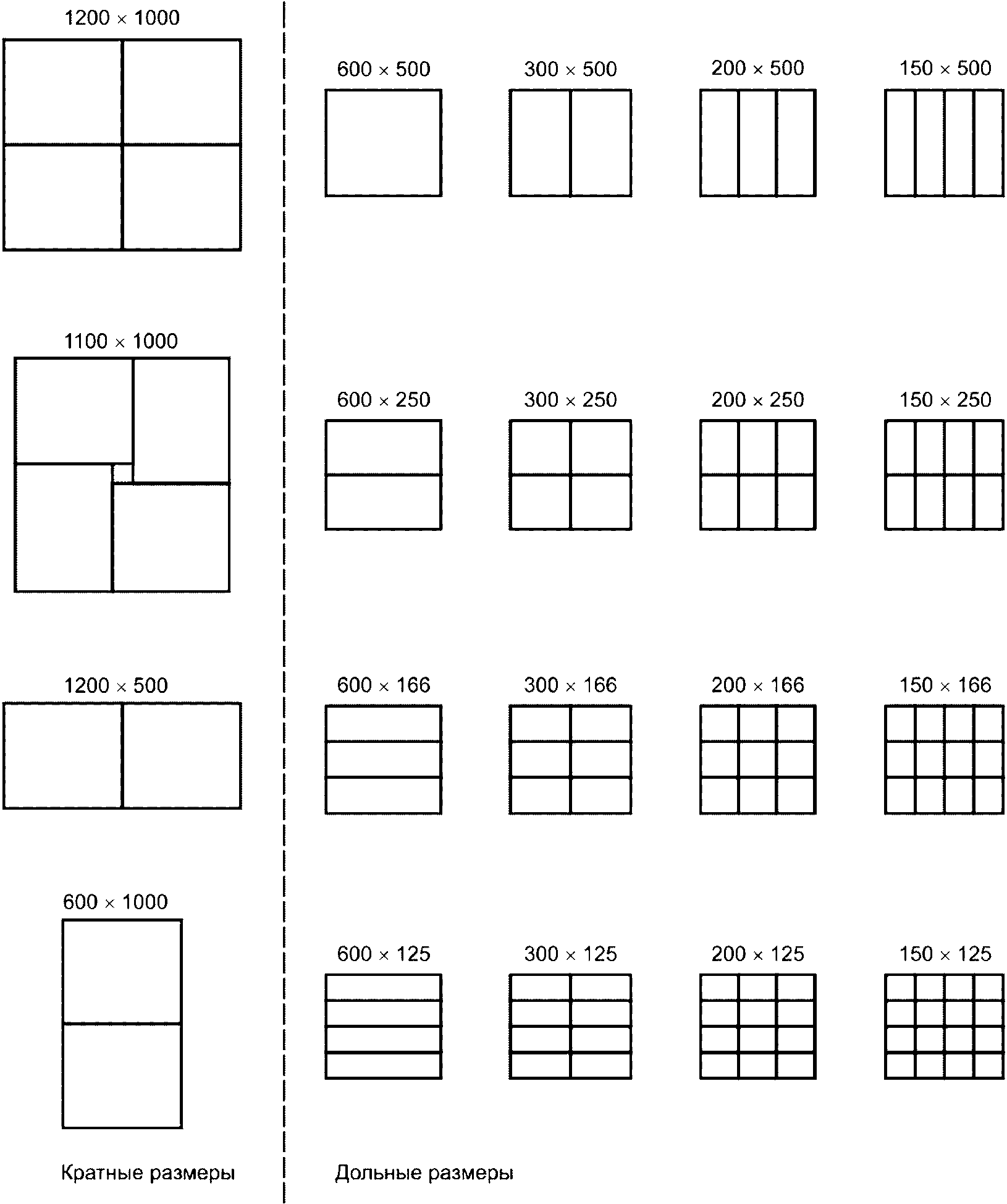 Рисунок 4 - Примеры сочетаний кратных и дольных размеров