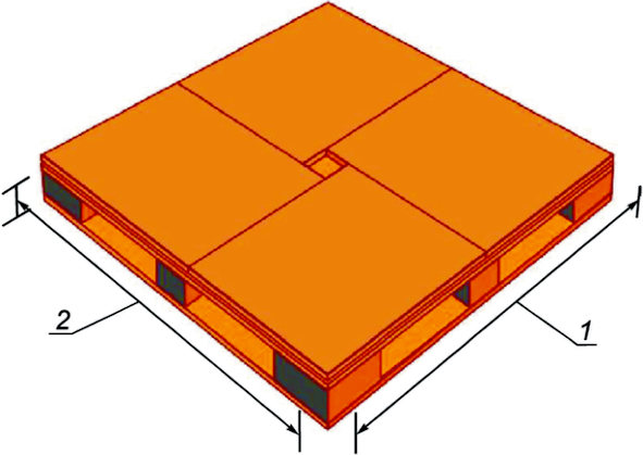 1 - длина поддона 1100 мм; 2 - ширина поддона 1100 мм