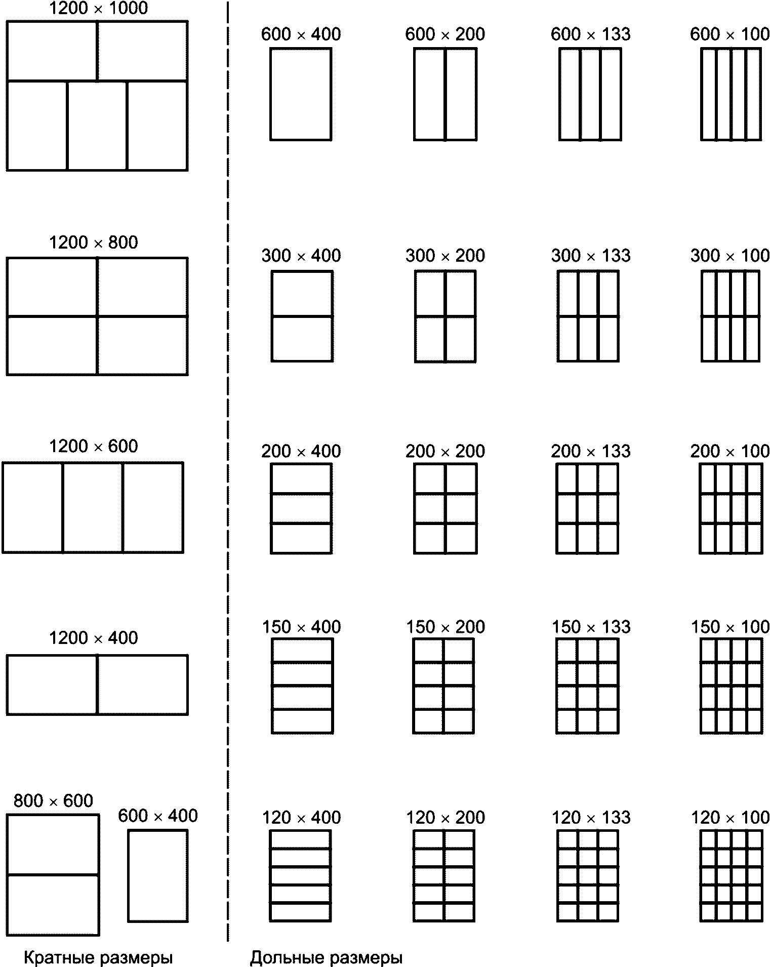 Рисунок 2 - Примеры сочетаний кратных и дольных размеров