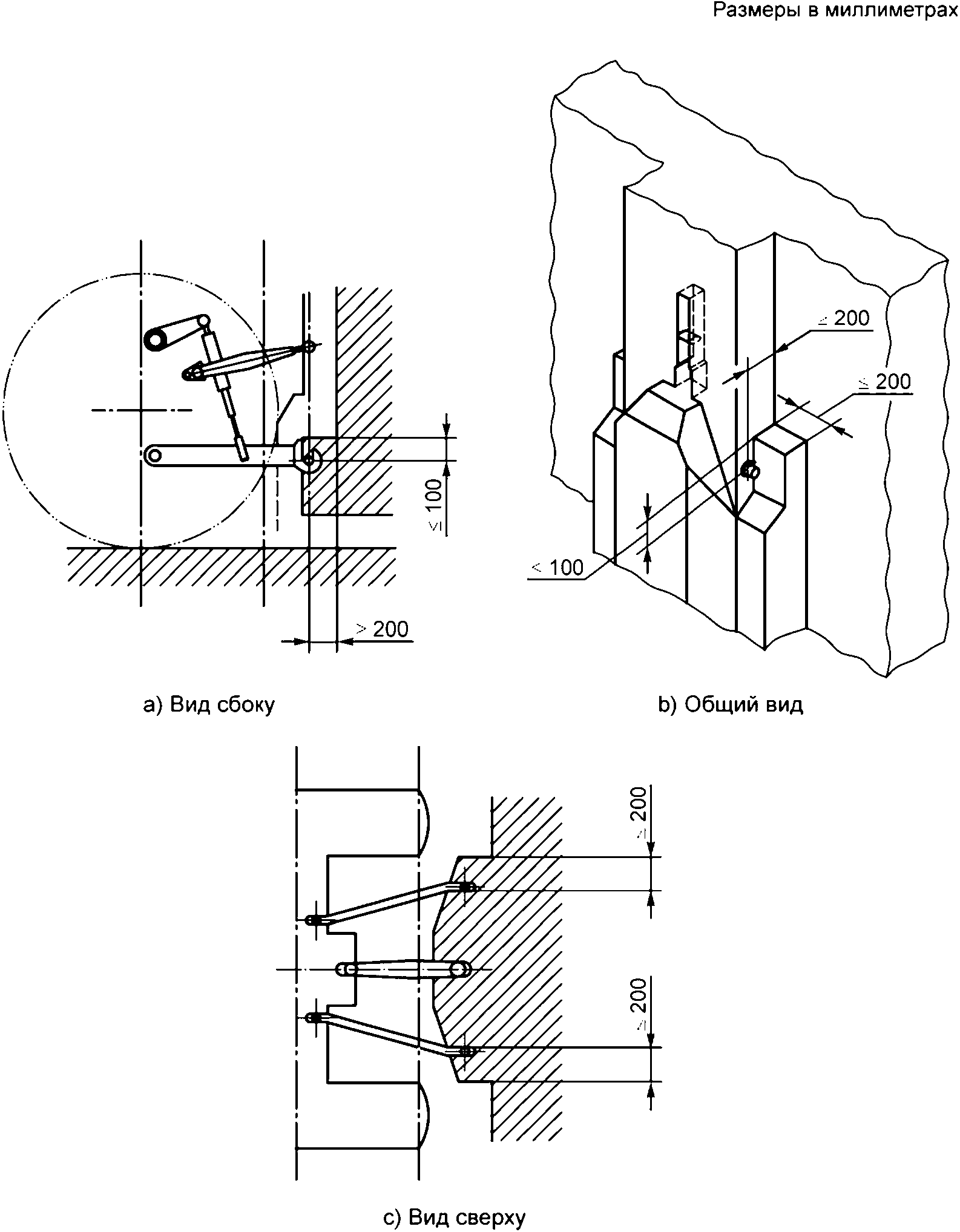 - органы ручного управления доступны стоящему на земле оператору и расположены за пределами заштрихованной области; показанной на