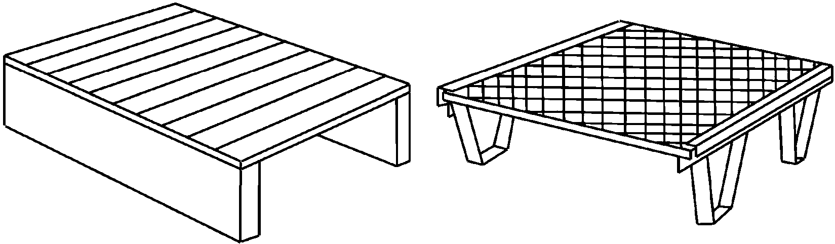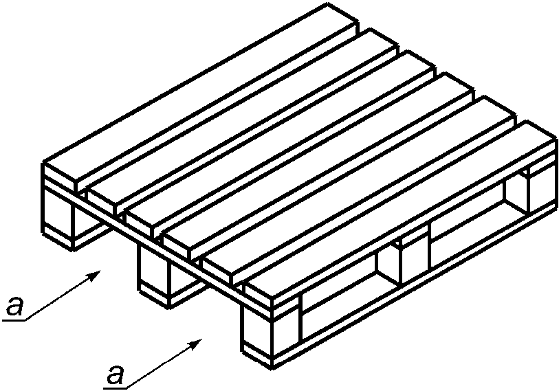 3.3 поддон-платформа (стеллаж): Платформа с двумя поперечными опорами или четырьмя опорными ножками и со свободным проемом между ними (см. рисунок 4). Примечание - Согласно ISO 509 [2] стеллажи не могут перевозиться тележками для перевозки грузов на поддонах. | en | stillage |