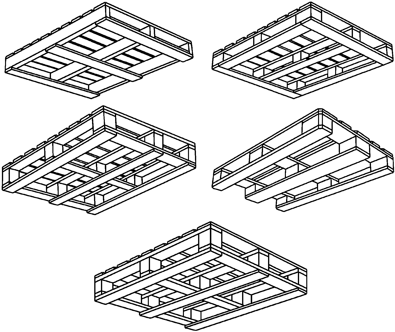 3.11 упрочненный поддон: Плоский поддон, детали нижнего настила которого накладывают сверху на другие детали поддона для обеспечения дополнительной прочности (см. рисунок 11). | en | overlap pallet |