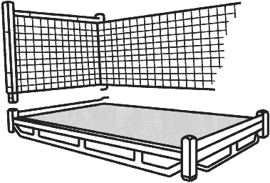5.3 сетчатая клеть для фиксации груза: Вертикальные решетчатые или сетчатые стенки, устанавливаемые на поддон для фиксации груза с двух или более сторон (см. рисунок 35). | en | load-retention cage |