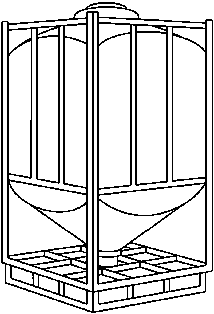 4.2.7 бункерный поддон: Герметичный ящичный поддон с четырьмя неразборными стенками, оснащенный герметичной крышкой и разгрузочным устройством в настиле (см. рисунок 27). Примечание 1 - Бункерный поддон применяют для сыпучих или гранулированных грузов. Примечание 2 - В некоторых случаях бункерные поддоны могут называться контейнерами средней грузоподъемности для насыпных (наливных) грузов (IBC). Определения, касающиеся IBC, приведены в ISO 15867 [4]. | en | silo pallet |