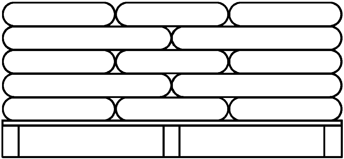 2.5 равномерно распределенный связанный груз: Груз, равномерно распределенный по всей поверхности верхнего настила поддона, где каждый ряд грузов укладывается относительно предыдущего ряда таким образом, чтобы добиться связанности (сцепляемости) грузов между собой (см. рисунок 2). Примечание - Примером связанного груза являются мешки. | en | uniformly distributed bonded load |